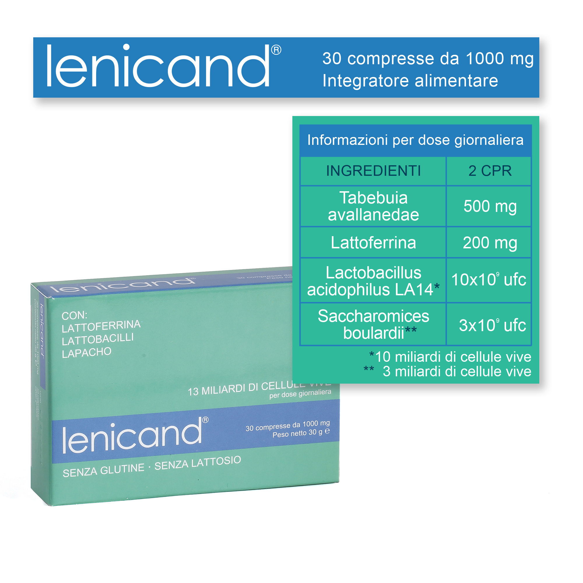 A BASE DI : LATTOFERRINA, LACTOBACILLUS ACIDOPHILUS (10×10˄9 UFC), SACCHAROMYCES BOULARDII (3×10˄9 UFC), TABEBUIA AVELLANEDAEUtile in caso di :