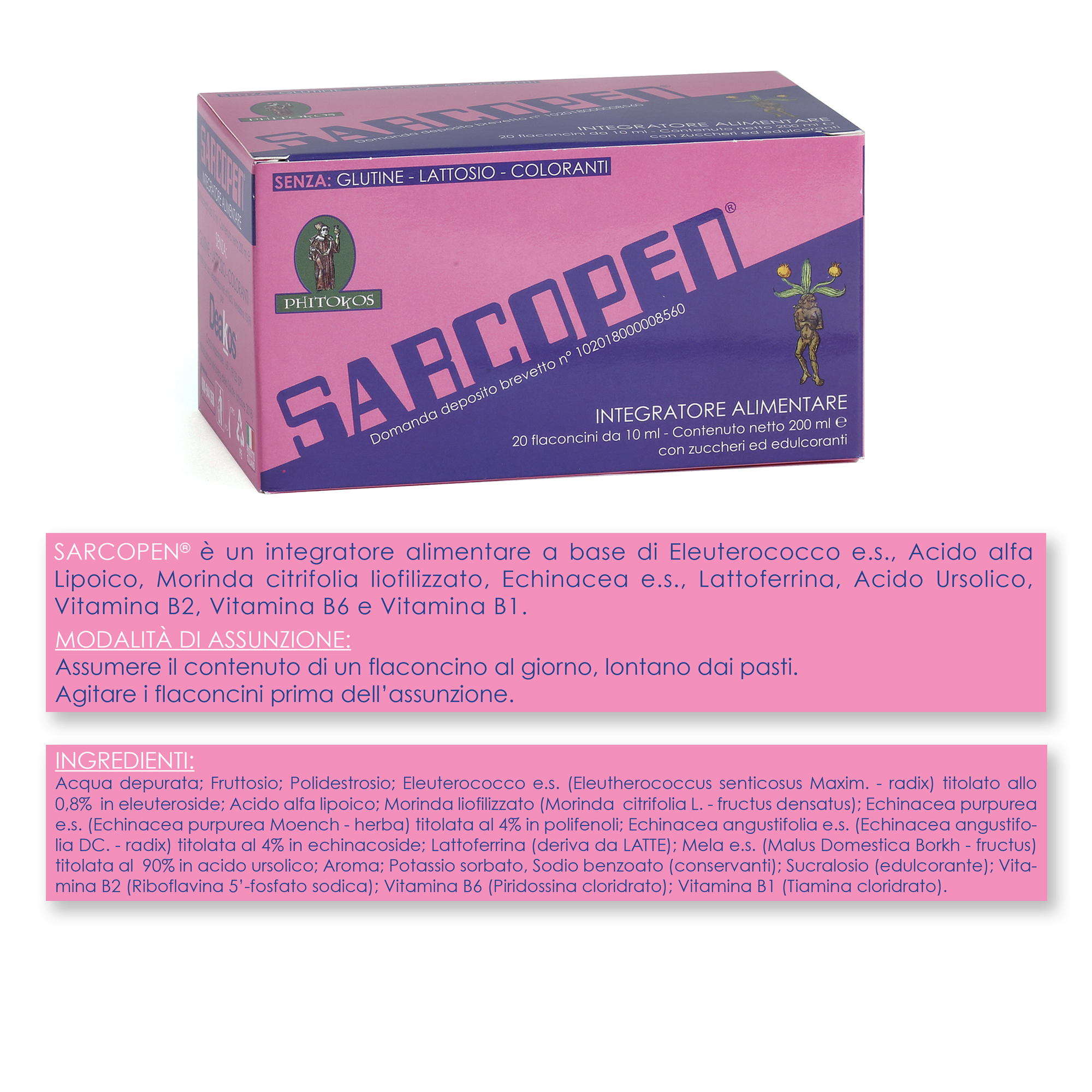 A BASE DI: ACIDO URSOLICO – MORINDA CITRIFOLIA – ACIDO LIPOICO – ELEUTEROCOCCO – ECHINACEA – LATTOFERRINA – TIAMINA – RIBOFLAVINA – VITAMINA B6